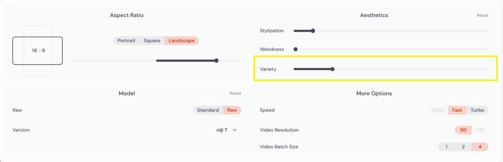 Debido a que la V7 es demasiado fiel al prompt, tiende a converger en composiciones y estilos similares con el mismo prompt. Al aumentar el Chaos, puede agregar aleatoriedad a la predicción de la IA.